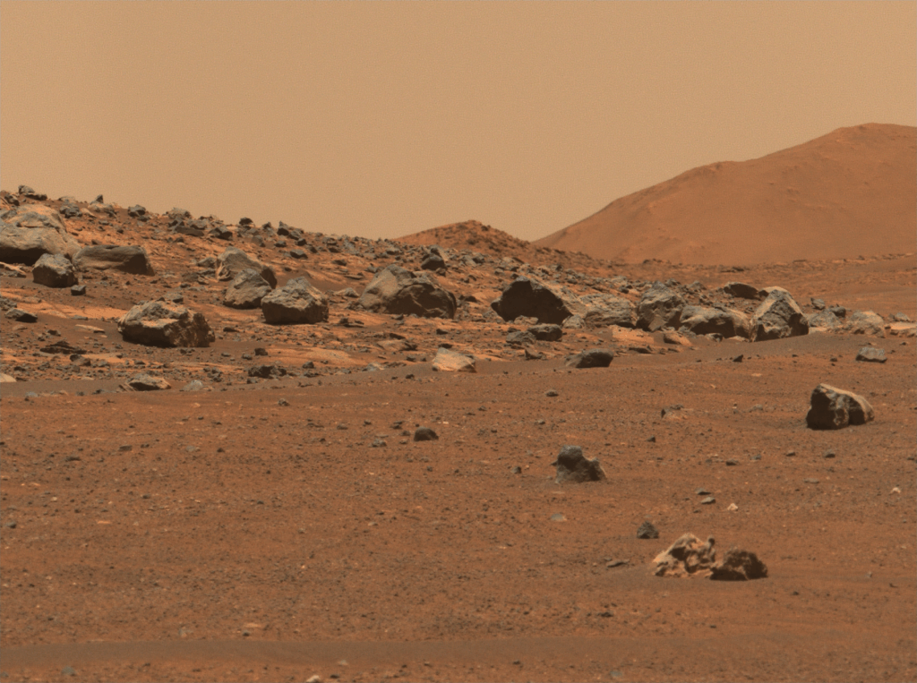 Observation Information: Camera: Mastcam-Z Left, Filter: L0, Focal Length: 110, Sol: 1558, LMST: 12:03:07.818. This is an autolook product generated by the Mastcam-Z Downlink team at Arizona State University.