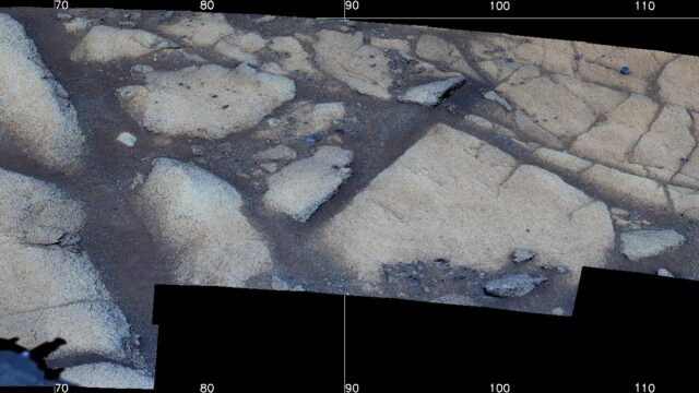Sol 1604: Kaggen Pavers Upper Contact Rubbly Material Mastcam-Z Mosaic